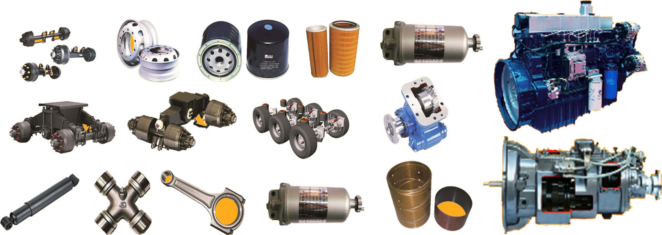 Temos inúmeras peças de reposição de diferentes marcas de caminhões e máquinas